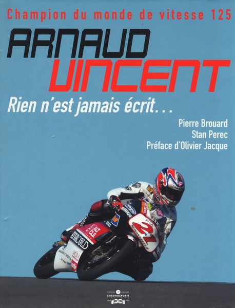 Titre / Tittle / Titolo: Arnaud VINCENT, champion du monde de vitesse 125 : Rien n'est jamais écrit... Auteur / Author / Autori: Pierre BROUARD & Stan PEREC Langue / Language / Lingua: Français / French / Francese Editeur / Editor / Editore: Chronosports Année d'édition / Year of edition / Data stampa: 2003 Pages / Pagine: 128 Couverture rigide/ Hardcover/Copertina rilegato ISBN: 978-2847070422 |